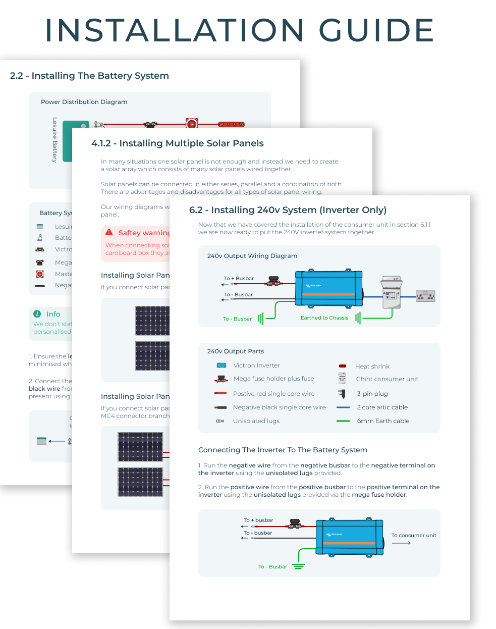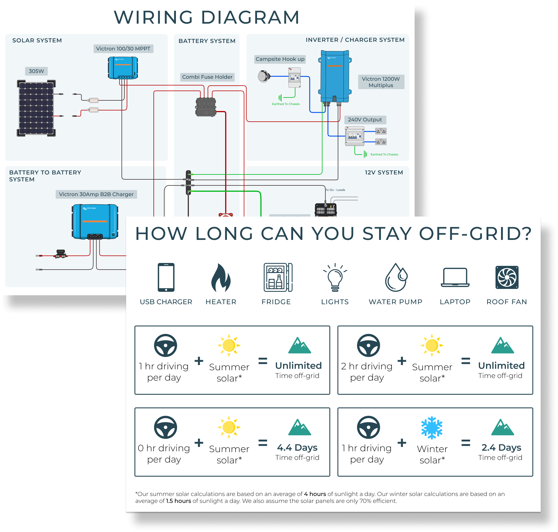Once you’ve given it this information, it calculates how long you can stay off-grid before you run out of power. It even builds you a bespoke wiring diagram for free, along with a quote to buy your entire system directly from us, including all the lengths of cable and other accessories you’ll need for your installation.