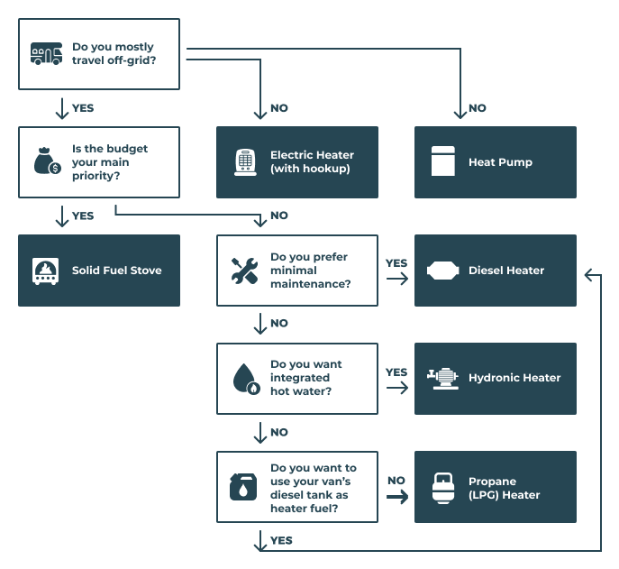 Choosing the right heating system will depend entirely on your needs, budget, and travel style.