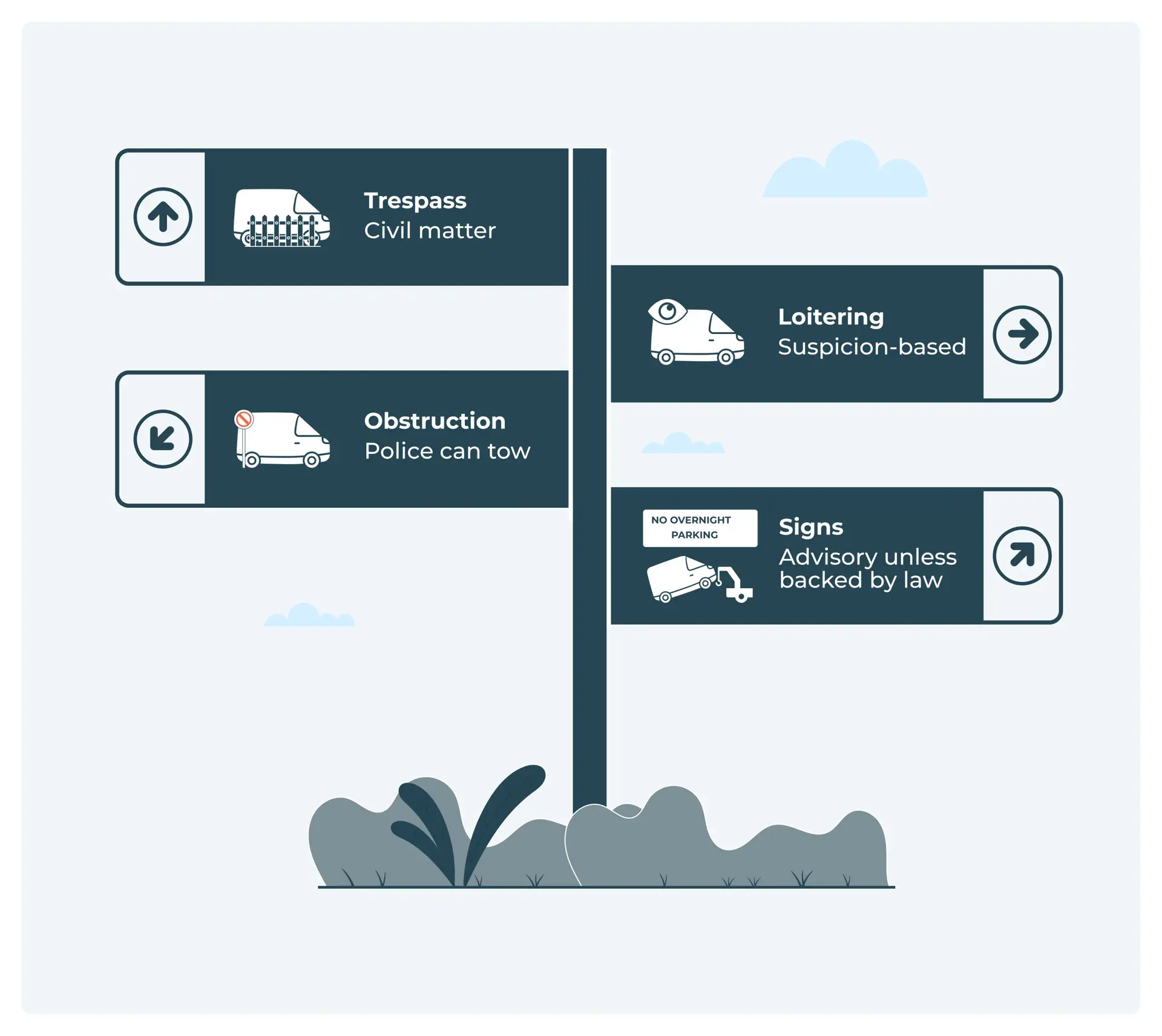 It’s also worth noting that while individuals may erect “No overnight parking” signs in their local area or popular tourist spots, these aren’t always legally enforceable unless they’re backed by an official bylaw. Without the accompanying order or regulation cited, they’re advisory, not compulsory.