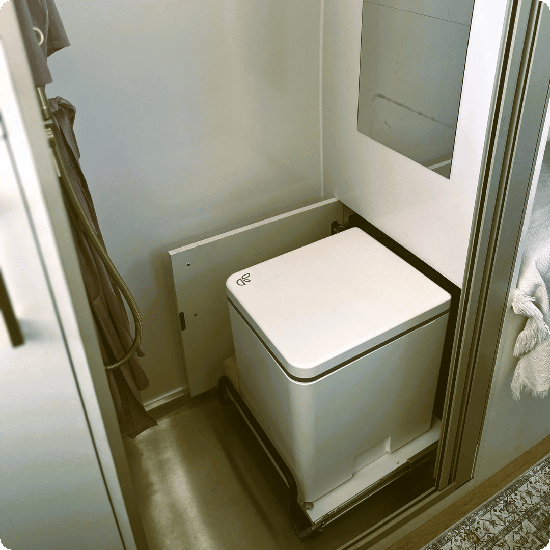 Another underrated hack is using a composting toilet. It might not be glamorous, but it gives us so much more freedom. You don’t have to rely on specific disposal points like you do with chemical cassette toilets, and it’s much easier to manage when you’re off-grid.