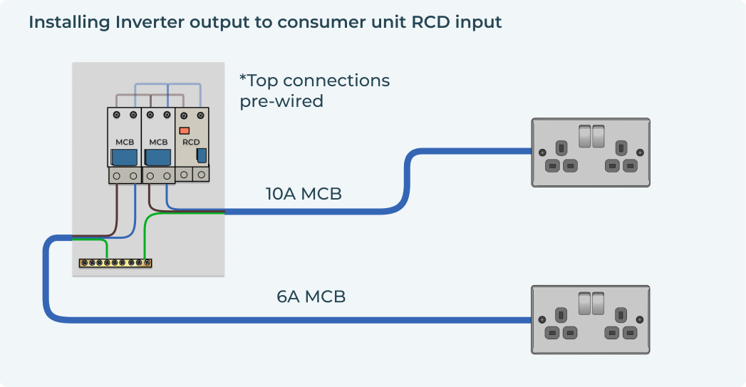 The input of your inverter and battery is now connected. Next, you will connect the inverter output to the consumer unit.