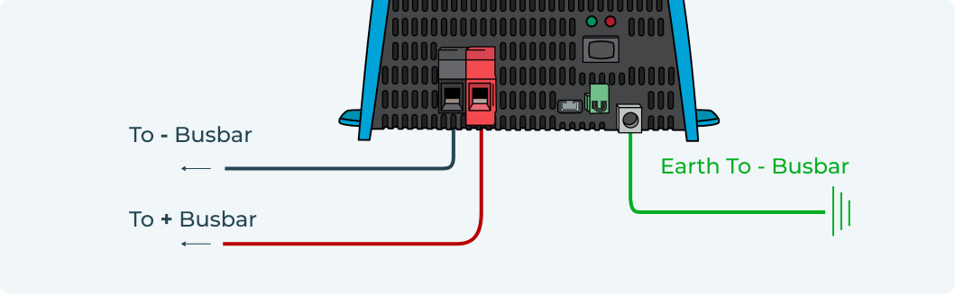 - Run the negative wire from the negative terminal on the inverter to the negative busbar/battery terminal using the unisolated lugs provided.